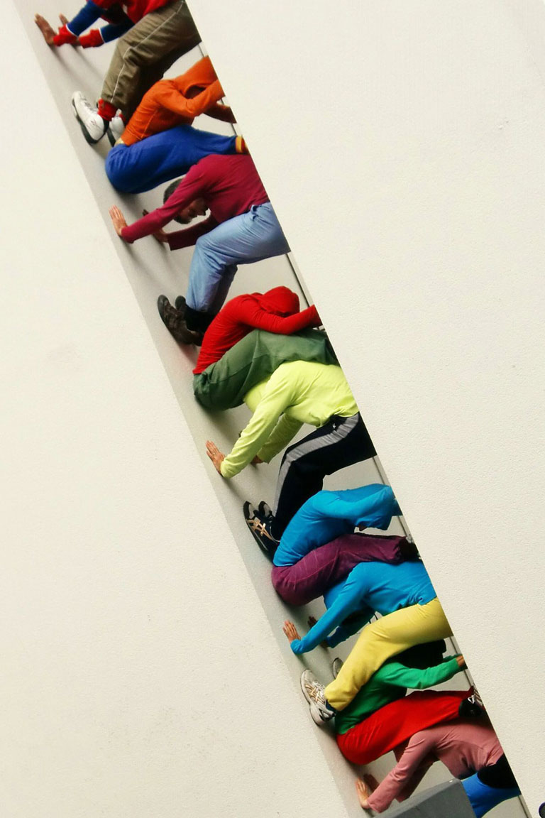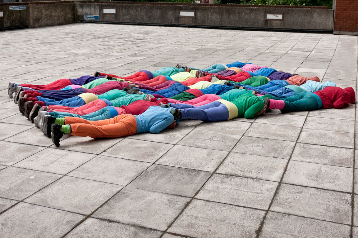 “bodies in urban spaces” ist eine temporäre Intervention in unterschiedlichen urbanen architektonischen Räumen. Es ist ein sich bewegender Parcours, choreographiert für eine Gruppe von Tänzerinnen und Tänzern. Der Zuschauer folgt der (sich) bewegenden Masse durch öffentliche und halb-öffentliche Räume wie Plätze. Eine Kette schnell gebildeter einzelner Körper-Skulpturen eröffnet neue Perspektiven und Einblicke, ermöglicht ein neues Stadt-Erlebnis. Die Qualität des jeweiligen Ortes, der jeweiligen Tageszeit gibt jeder einzelnen Veranstaltung ihre einmalige Färbung.